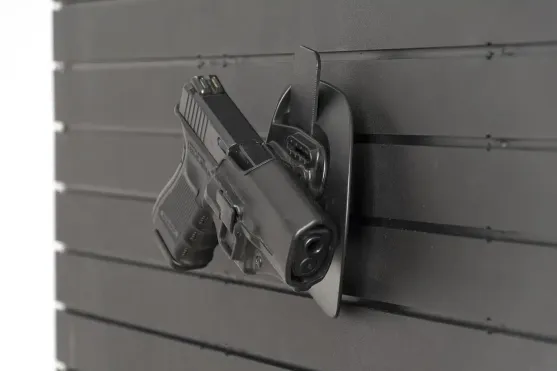 The ModWall Holster Hanger allows you to keep your pistol in its holster when hanging on your ModWall system. The mount is designed to work with any Inside the Waistband (IWB) or Outside the Waistband (OWB) holster. Perfect for Pancake style, Avenger style, or belt clip style holsters. Changing the arrangement of the mounting screws on the back of the mount allows you to choose from four different mounting positions. Also works well with any other tools, knives or equipment designed for attaching to your belt.